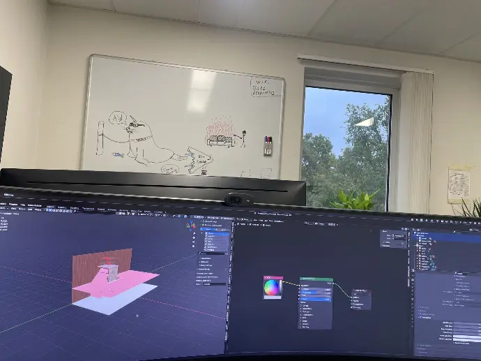 We werken vanuit een klein kantoor met een team van vier mensen. Iedereen heeft zijn eigen rol, maar we bouwen samen slimme en mooie 3D-software.